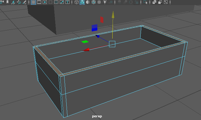 Once I had finished the top of the box, I started on the bottom. I created another cube primitive to start it. I put edge loops around the edges of the box and extruded them upwards so that there was a gap in the middle.