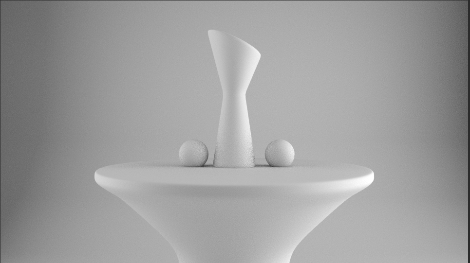 I then rendered the scene through the view of the camera I created, the objects and background are white as they don’t have anything applied to them yet.