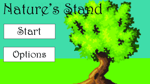 I wanted the title screen for Nature’s Stand to be simplistic so that the player would get to the game faster. I understand that the title screen is the first place the player sees when they load the game, but there isn’t much that I can put on mine due to the lack of features in my game.