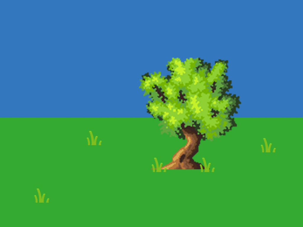The screen contains a grassy background with a single tree on the right side. To the left of that is the title and the interactible buttons. I could improve this menu by adding more details to the background, like grass and clouds, and maybe more interactible elements, although I don’t currently know what they could be.