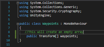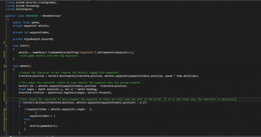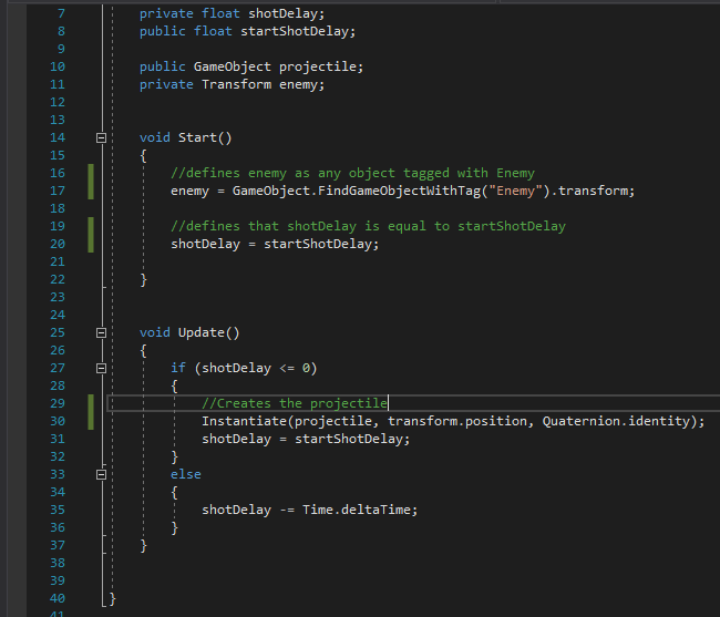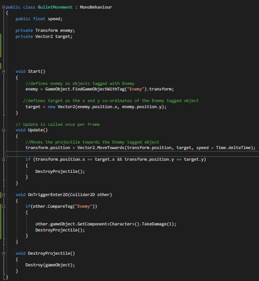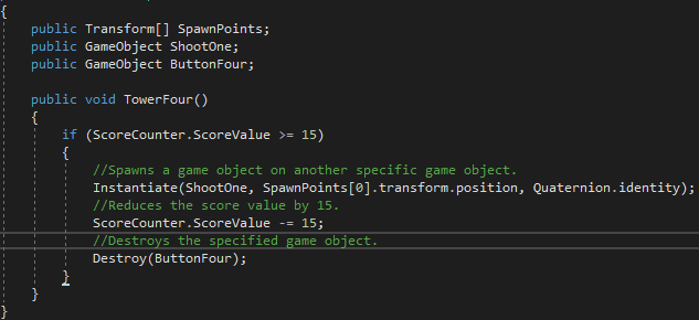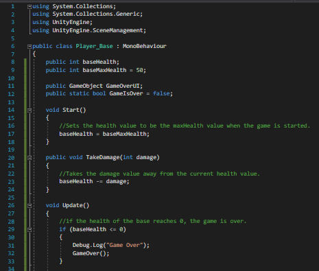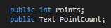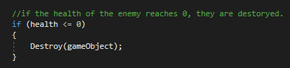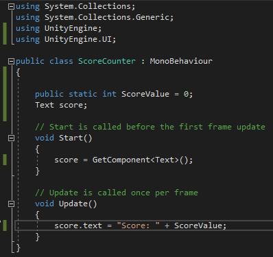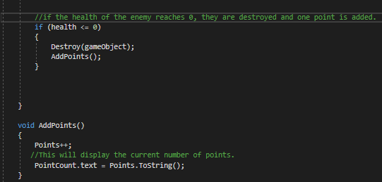 The point script sets the base score value as 0 and sets the score text to say ” Score: 0″, the text will update when an enemy is destroyed and points are added.