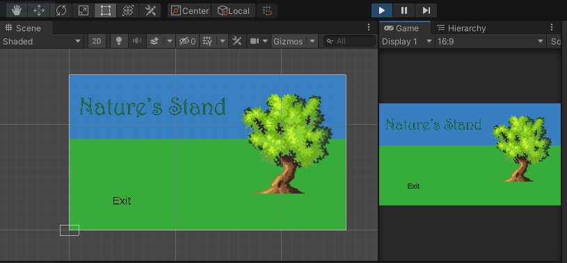 NOTE: The screenshots shown are during the development of Nature’s Stand therefore assets may change appearance throughout.