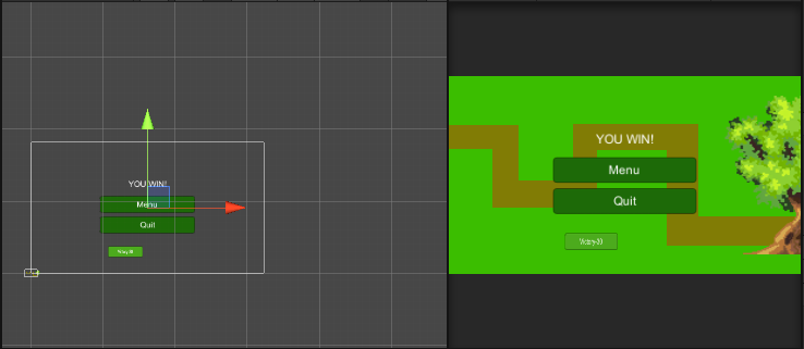 Level selection menu created. Buttons Level 1, Level 2 and Level 3 added.