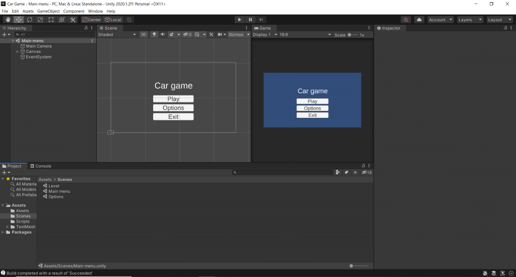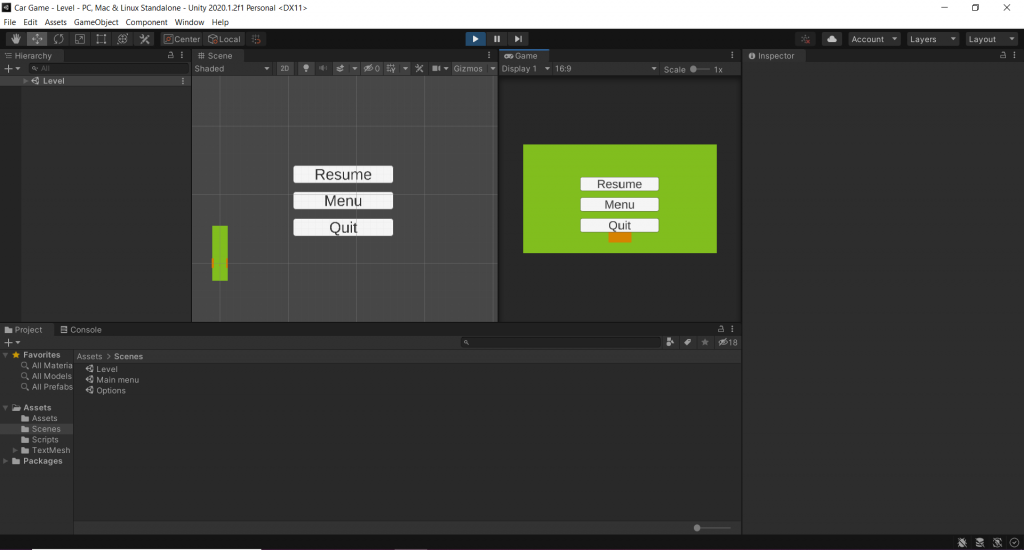 Today I started scripting the prototype car game. I am using Unity as it is the engine I am most familiar with. I will be using placeholder assets until the actual assets are created.