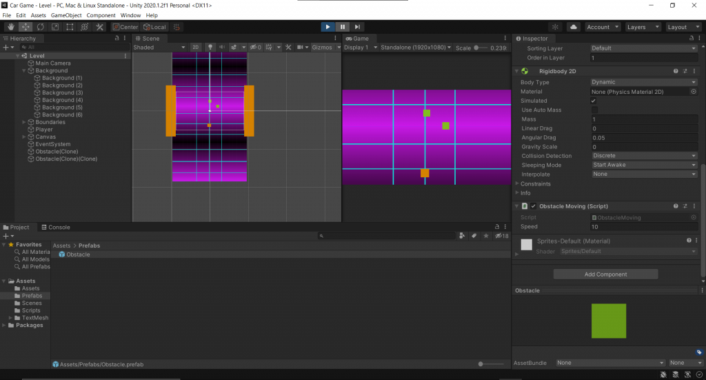 I have also changed the speed values for the player and the speed value for the obstacles so that the level isn’t as hard as it was before.
