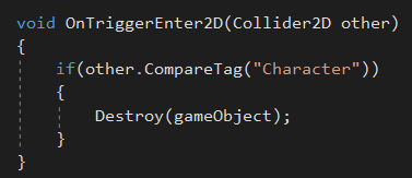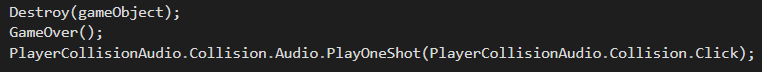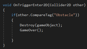 I added a collision trigger to the player script so that when the player collides with an obstacle they are destroyed and trigger game over.