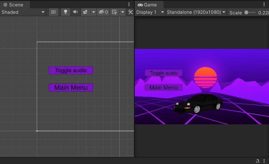 I added a toggle audio button so that the player can mute the menu music if they don’t want it playing.