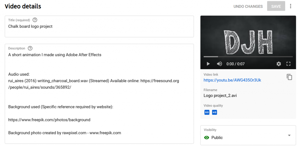 After I had completed the animation, I added sound and uploaded it to YouTube. I added the appropriate references for elements used within the animation.