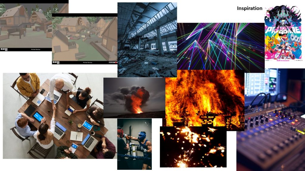 I have created a moodboard of images relevant to the business I want to create. Right now, this idea is a game development company that creates ridiculously over-the-top fighting games with massively exaggerated effects and hype music backing it. There would be a group of people developing the game due to it spanning across multiple creative fields.