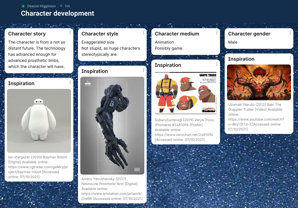 This week I was tasked with coming up with and developing an idea for my character. This is the padlet I created.