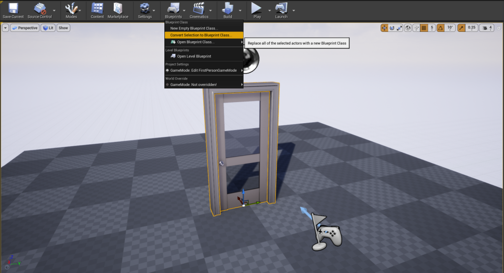 I then placed the starter content door and door frame model that are provided in Unreal and converted them into a blueprint.