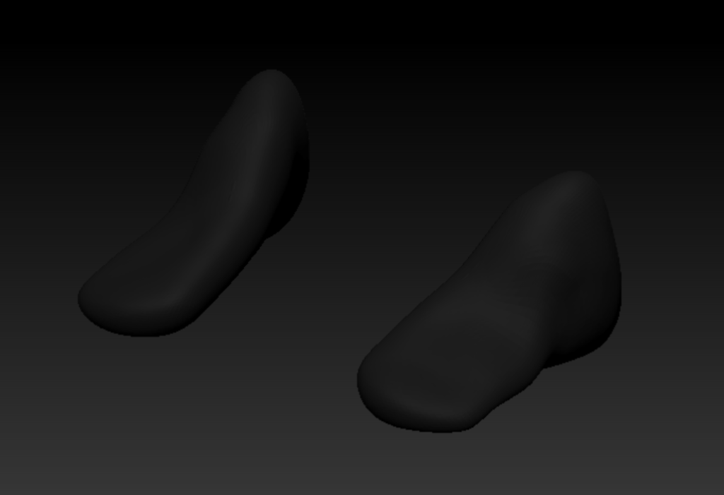 The foot I had made initially was too pointed at the front so I remade it. Using the move brush, I pulled out the font of a sphere and the pushed down to create the look of a foot. I added a slight curve to the bottom to follow the natural curve a foot does. I also used polypaint to paint the feet the same black as the chest and legs.