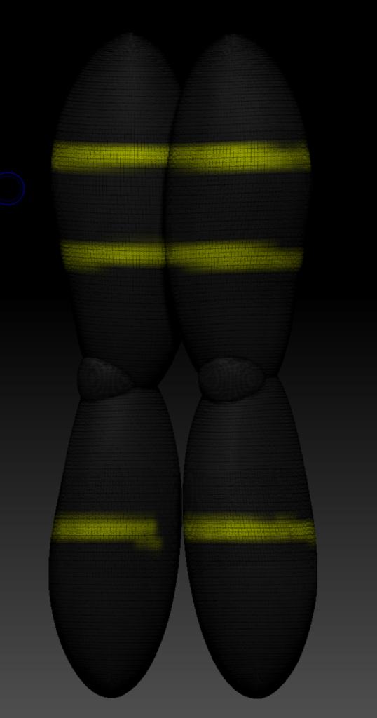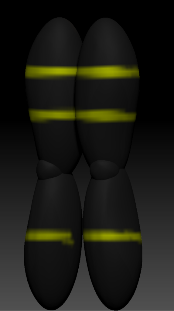 I again used polypaint to paint the legs. I chose the same black as the chest piece for the trousers and used the same yellow to add high visibility strips to them.