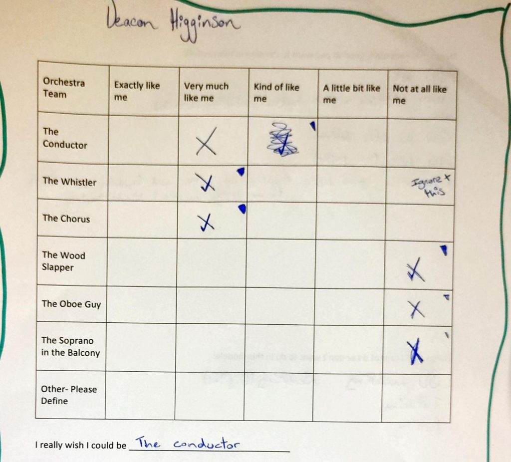 While watching the YouTube video, we had to watch individuals in different roles, such as the conductor and the whistler, then, on a sheet we had been given listing roles, cross how closely we relate to different roles.