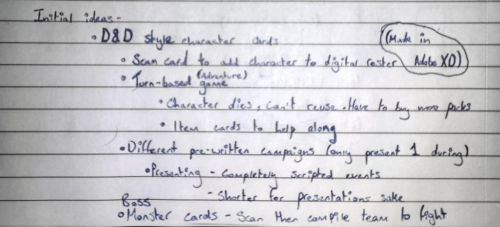 From the mood board I was able to come up with an idea for a game. It will be both a physical trading card game as well as a digital turn based combat game. The player will obtain real card packs, inside will be various cards. On these cards will be code that the player will enter in game to use the character or item that is on the card. Cards will include characters, items and bosses. The characters and items will be of varying rarities, the higher the rarity the more effective the card in the game. Boss cards will allow players to fight bosses for in-game rewards. Outside of fighting bosses in-game, the player will be able to play through campaigns that tell stories while making players fight enemies.