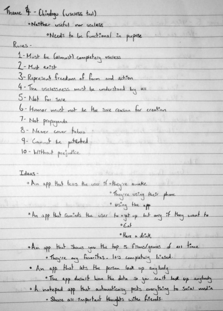 The fourth theme for Rapid Prototype Design is Chindogu, useless inventions with a usage.
