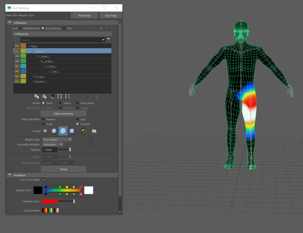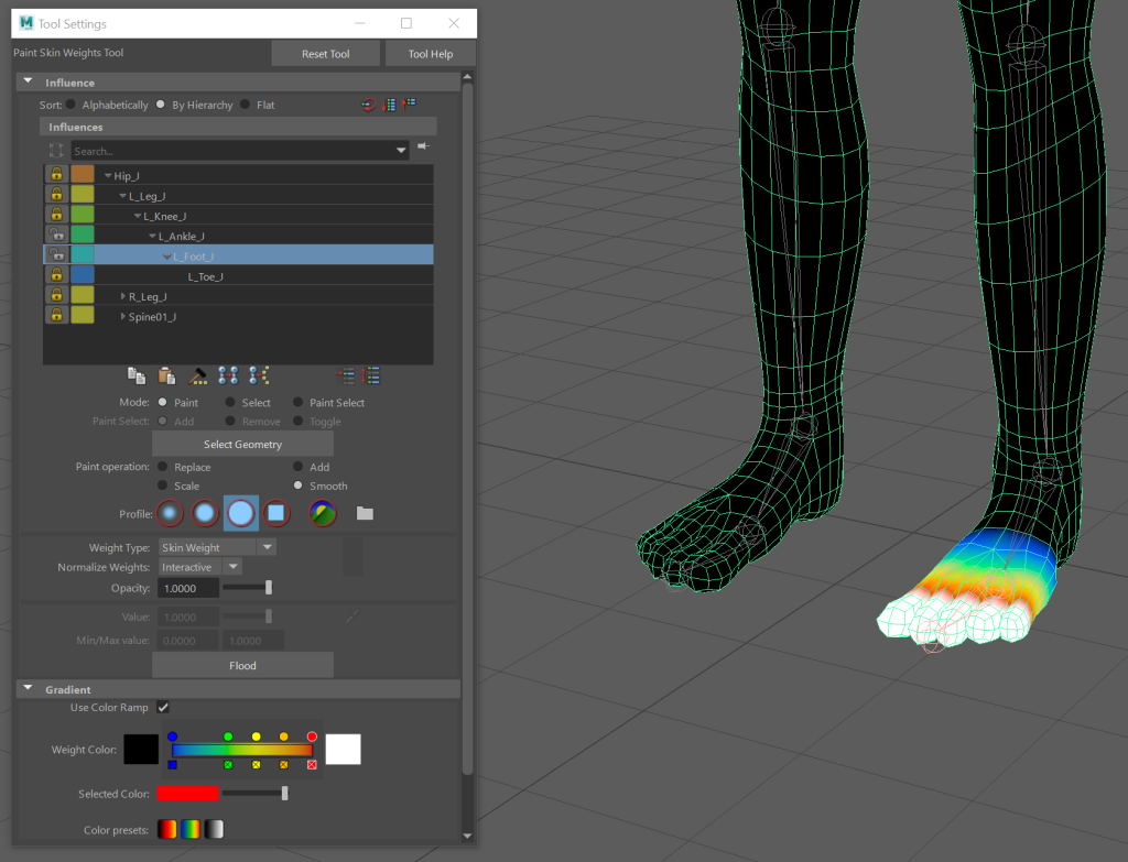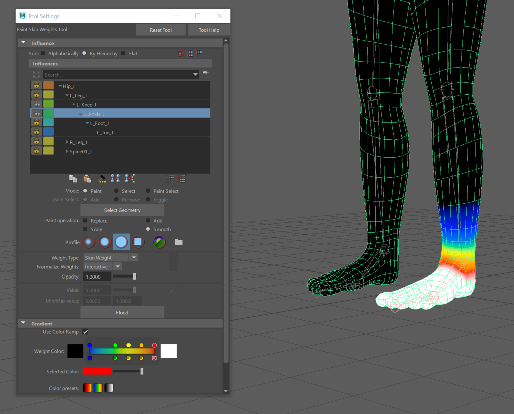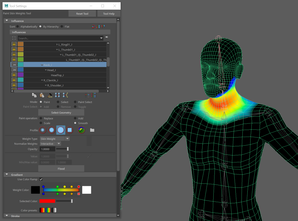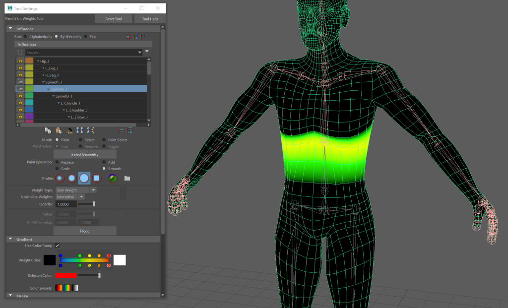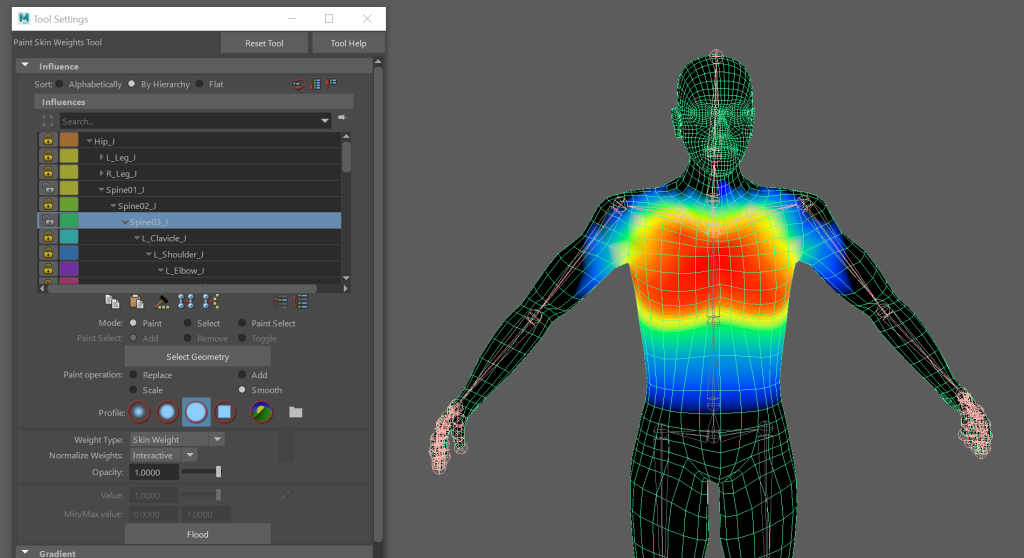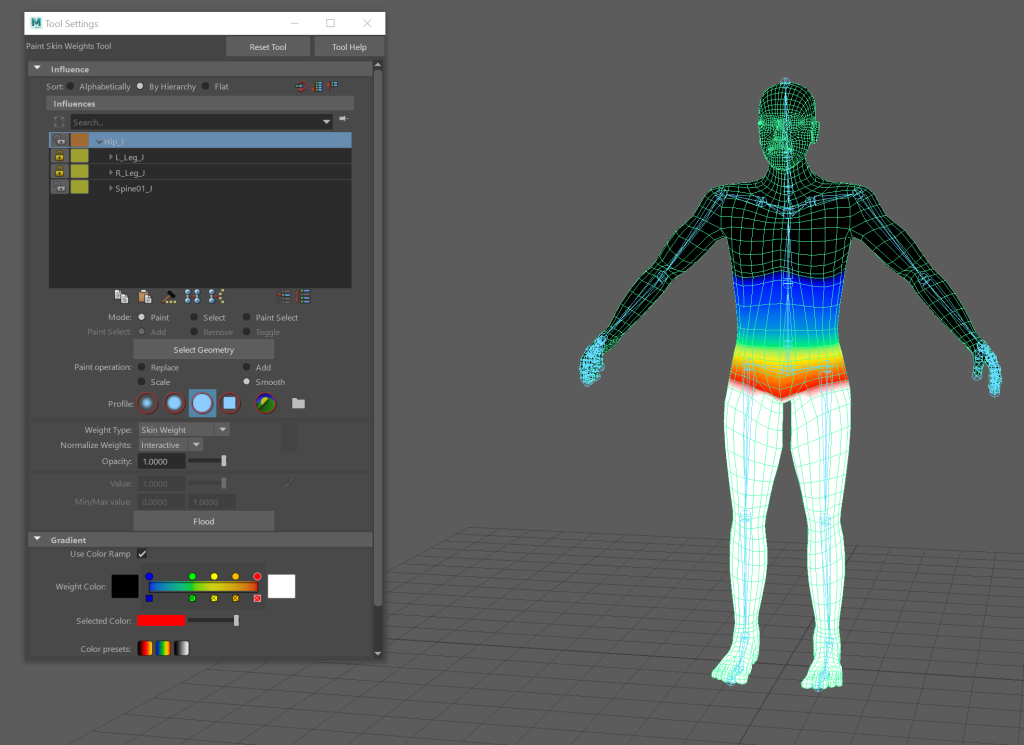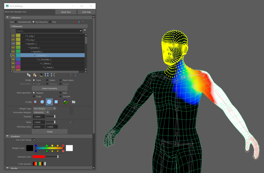 To replicate the painting I had done on the left side of the character, I used mirror skin weights along the YZ axis.
