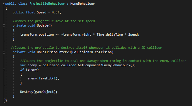 The health and shooting scripts are the same used in Fragmented. I lowered the enemy health value to 1 so that the player could destroy obstacles in one shot.