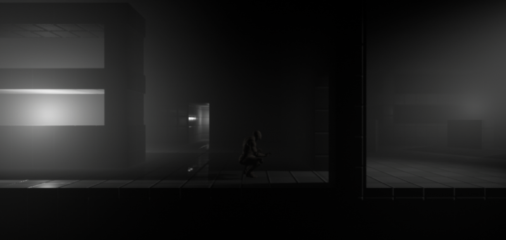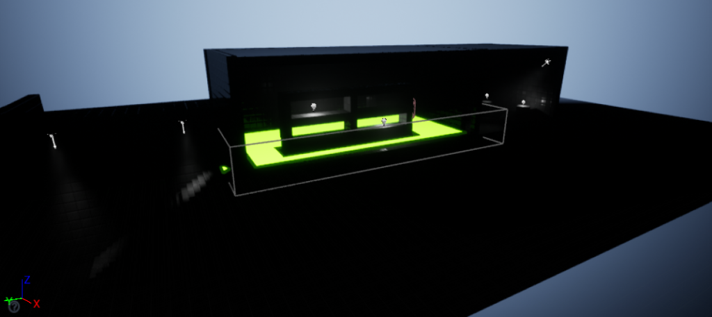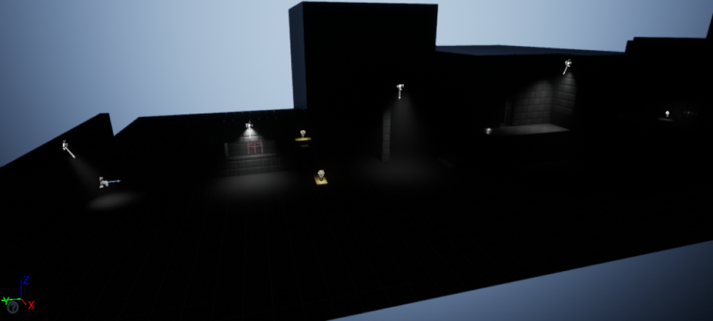 I have created a simple blockout of the playable level, with lighting, in Unreal Engine.