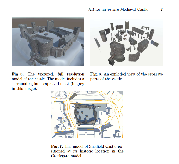 In the paper Recreating Sheffield’s Medieval Castle In Situ using Outdoor Augmented Reality (2018), the possibility of creating an augmented reality application recreating Sheffield’s castle in it’s original location and the more technical elements of achieving this are documented.