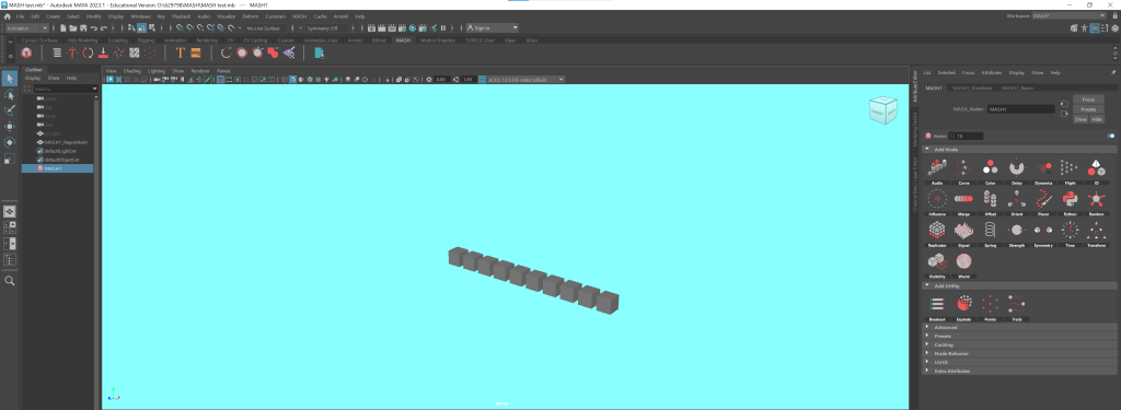 Following the tutorials on Canvas, I created a cube and turned it into a MASH mesh.
