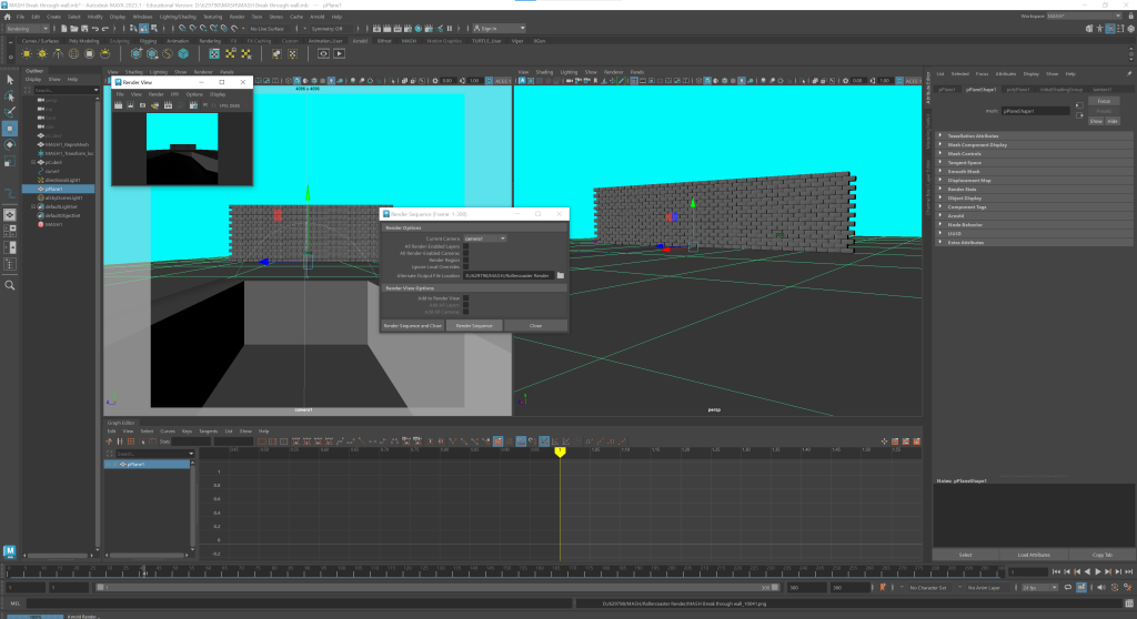 After I had experiment for a while, I followed the tutorial for the roller coaster breaking through a wall animation. Although I completed this and attempted to render, the renderer kept crashing midway. Even after further tweaks to various settings, I couldn’t get the animation to fully render.